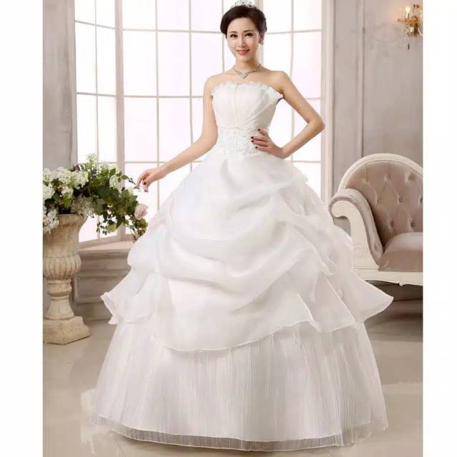 Kamu yang menyukai desain sederhana tapi tetap menonjolkan kesan elegan . Gaun pengantin wanita pengantin putih murah dan elegan .